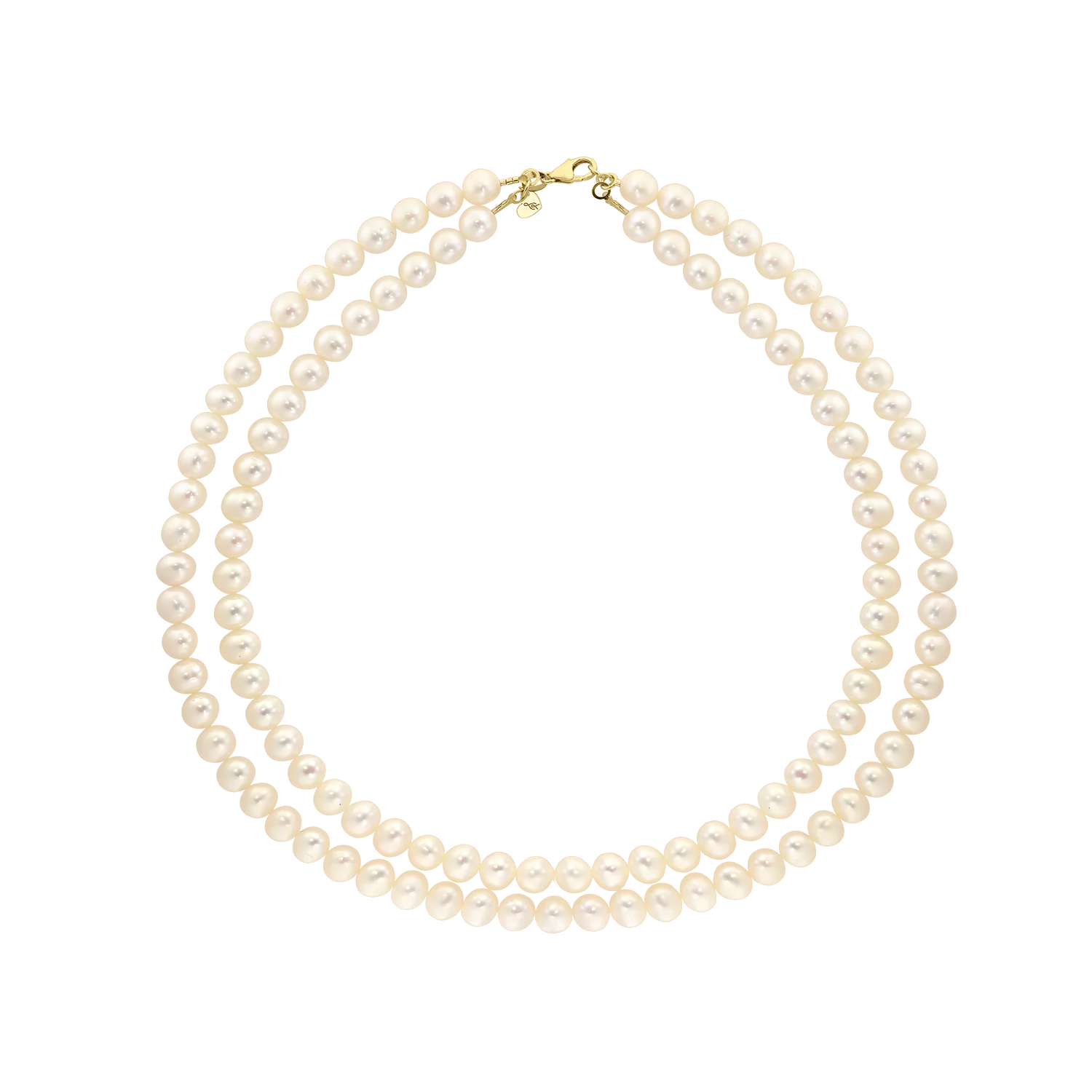 Colier dublu 37 cm cu perle de cultura de 6mm cu inchizatoare din aur galben