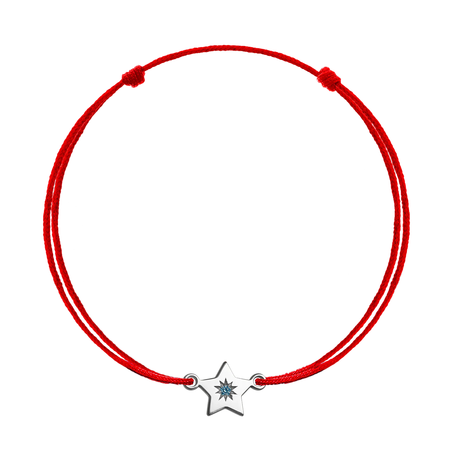 Bratara pe snur Stea Norocoasa, cu diamant albastru din aur alb