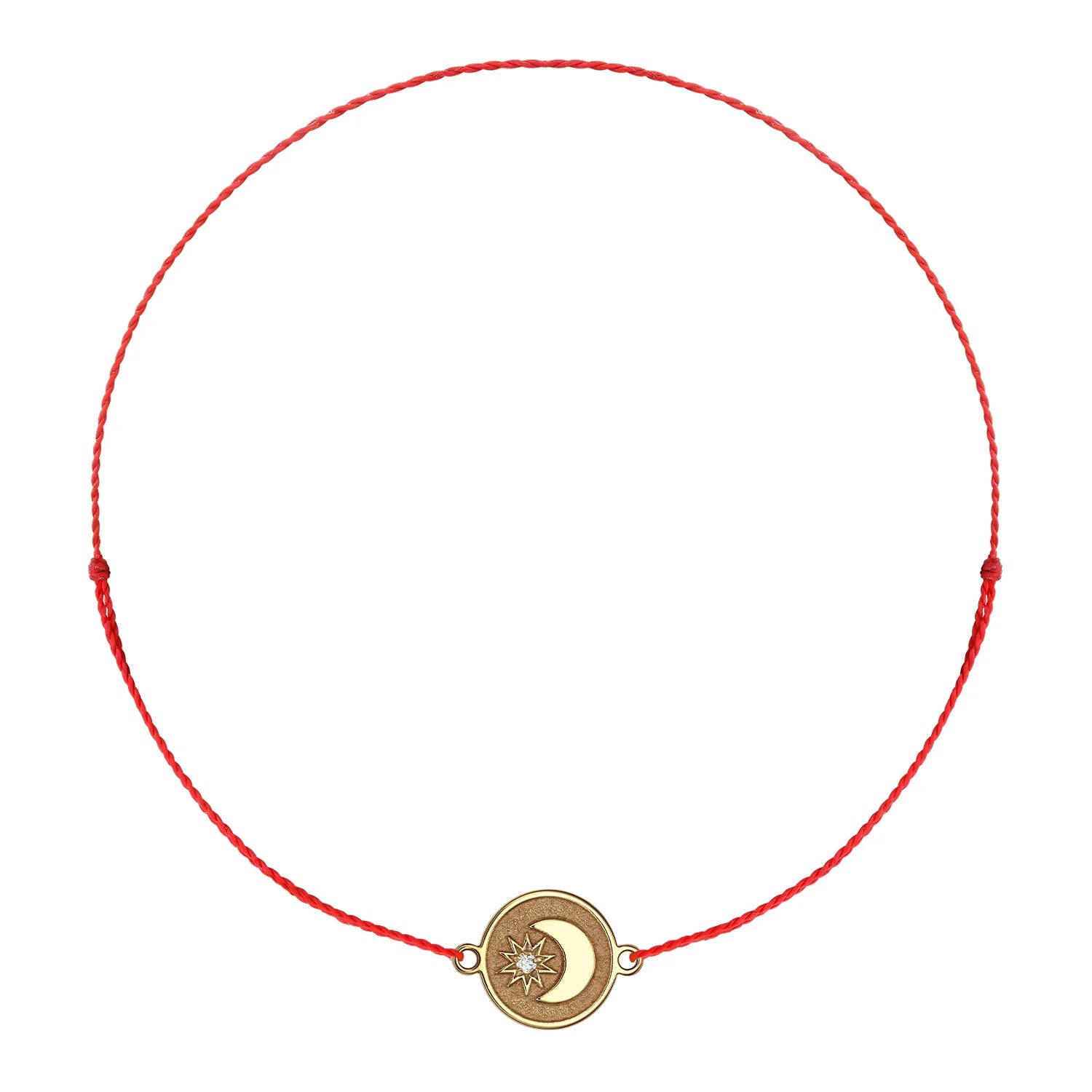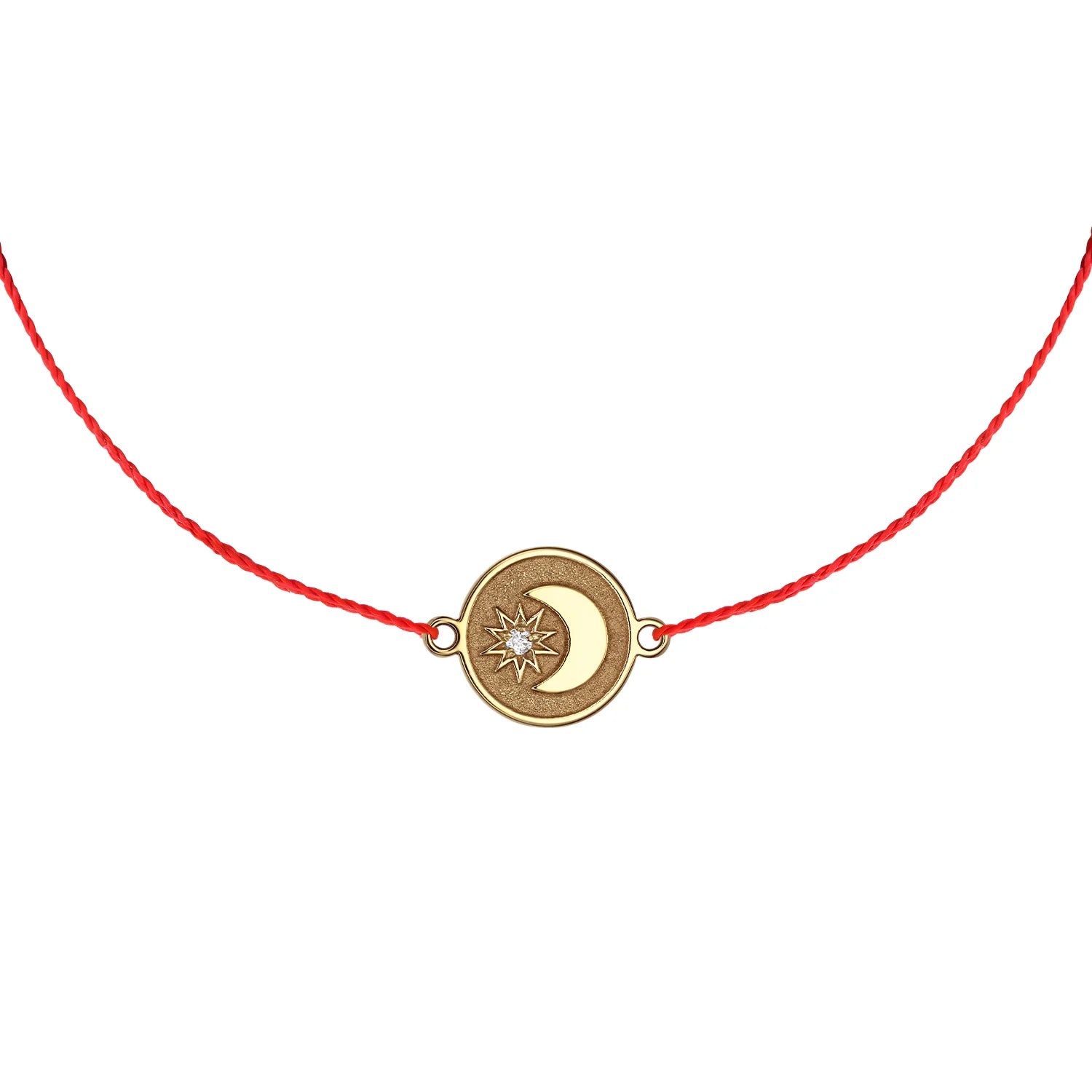 Bratara pe snur Luna si Stea, cu diamant alb, gravat, din aur galben