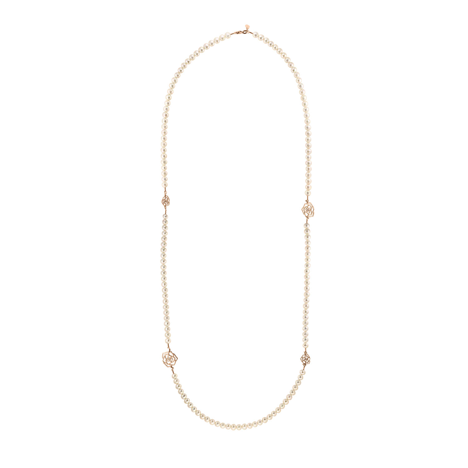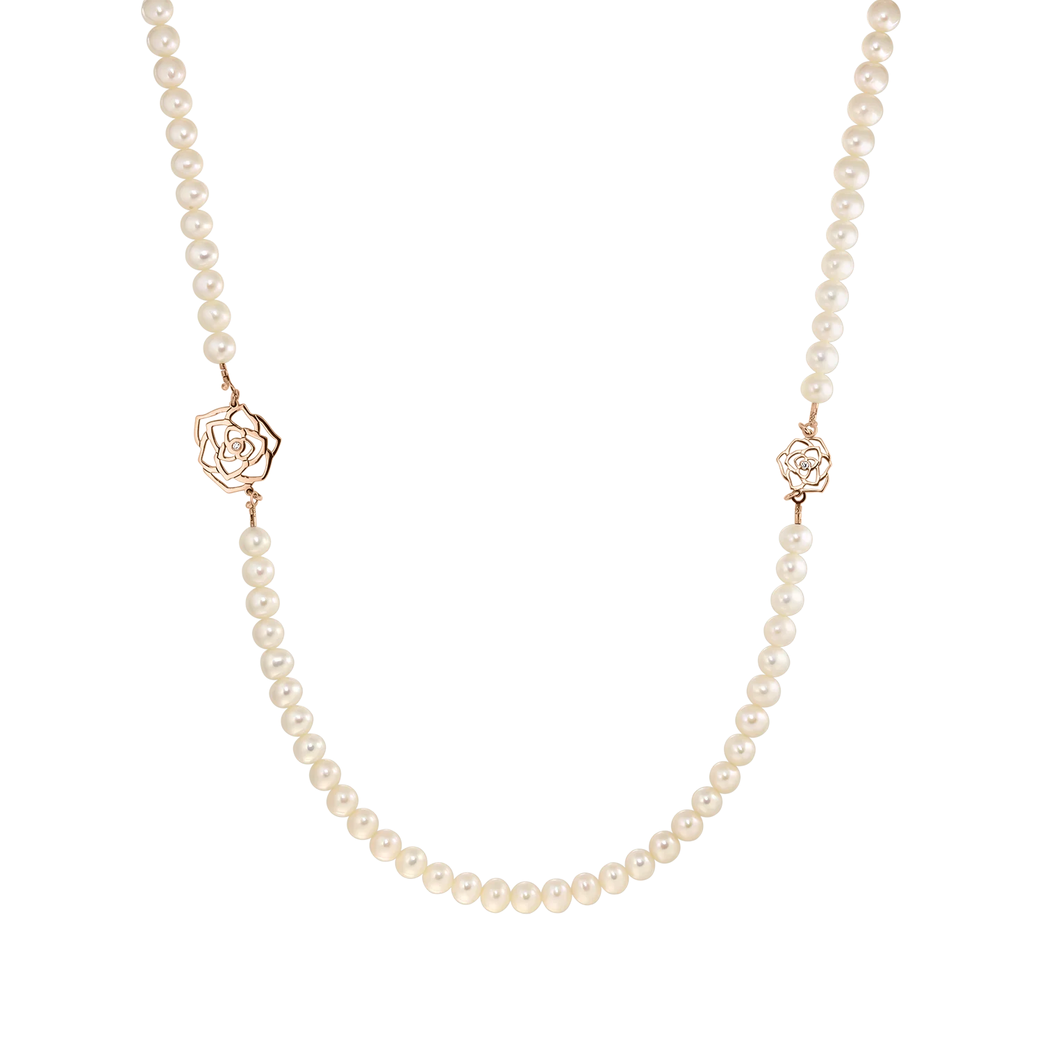 Colier Rose 90 cm cu perle de cultura de 6mm cu diamante albe si inchizatoare din aur roz