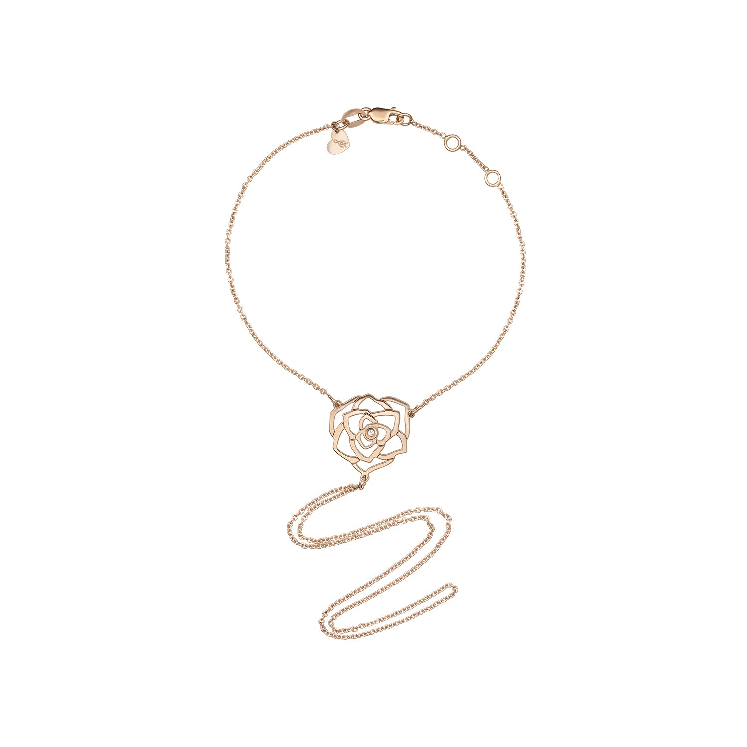 Bratara pe lant Rose cu diamant alb, din aur roz, double