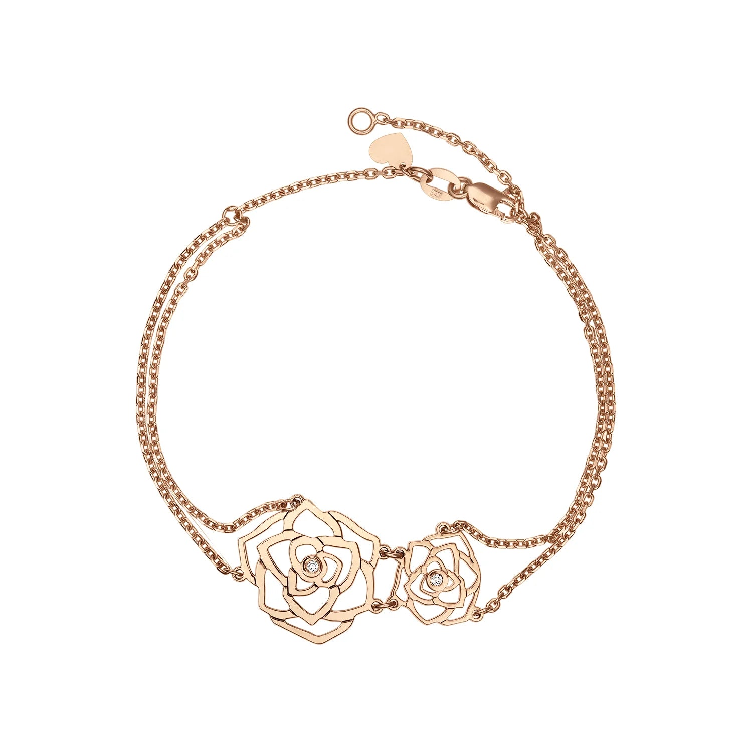 Bratara pe lant Rose cu diamant alb, din aur roz, double