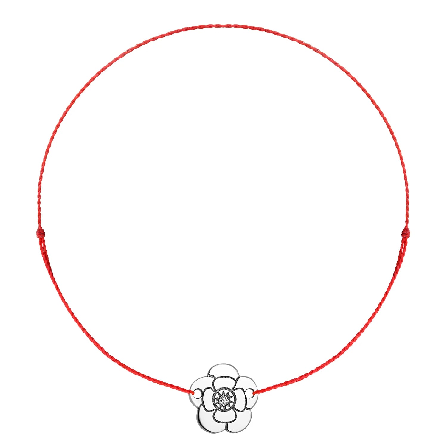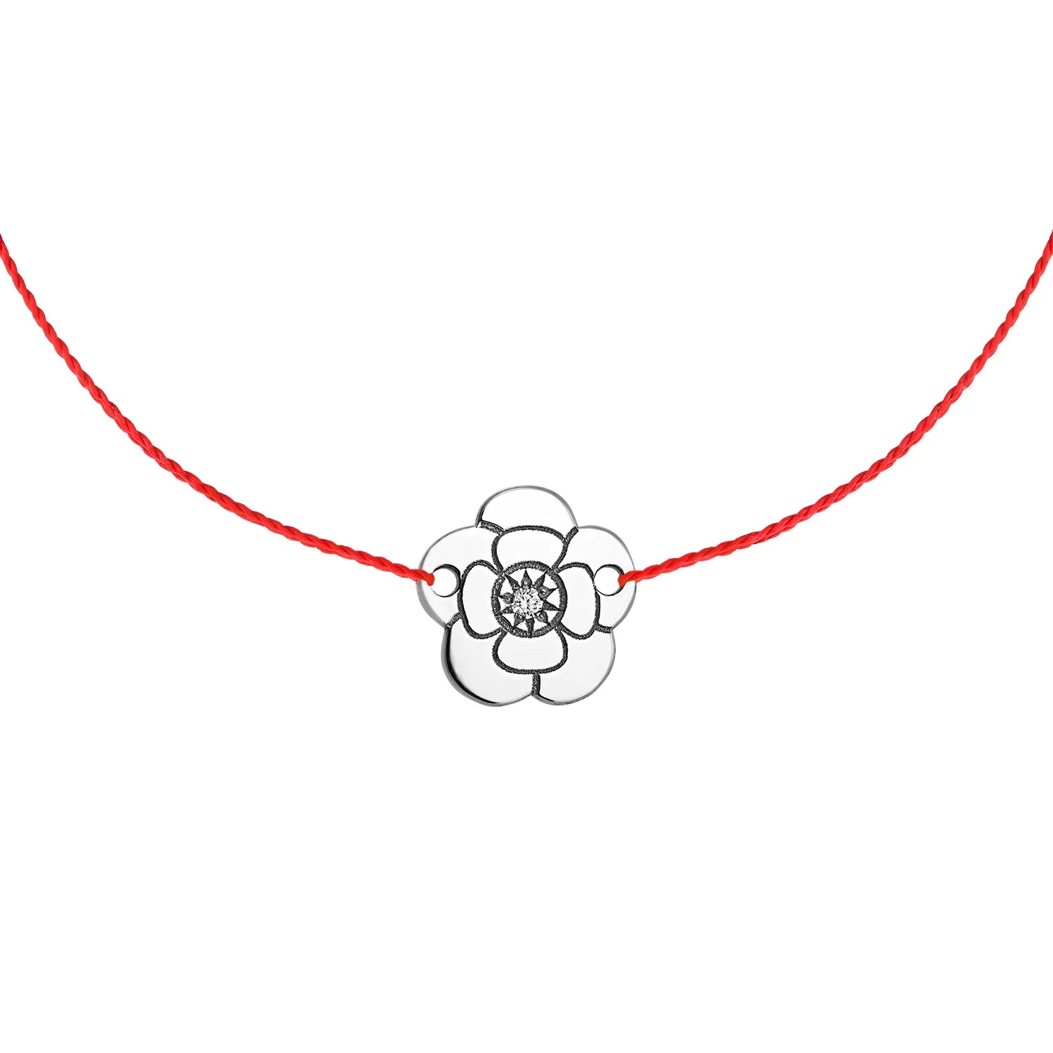 Bratara pe snur Camelie cu diamant alb, din aur alb