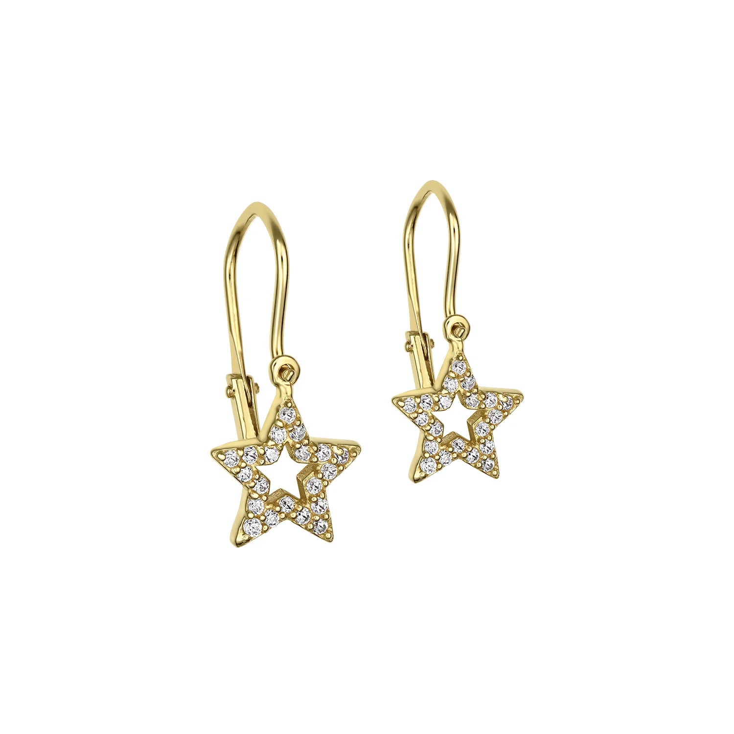 Baby Earrings Shiny Star with white diamonds in yellow gold